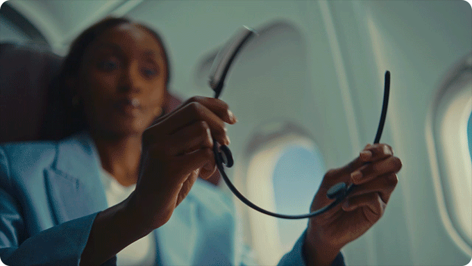 The flexible headband fits naturally and weighs only 33g for all-day comfort.